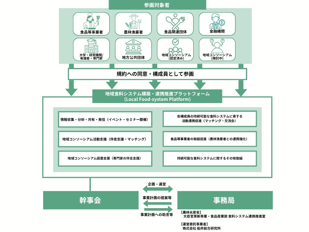 中堅・中小企業を対象に専門コンサルタントを擁する経営コンサルティング会社の株式会社船井総合研究所(本社:東京都中央区、代表取締役社長:真貝 大介、以下、船井総合研究所)は、農林水産省が令和7年10月1日に設置した「地域食料システム構築・連携推進プラットフォーム」の事務局運営を受託しました。それに伴い、プラットフォーム専用WEBサイトを開設し「構成員(※)」の募集を開始しています。