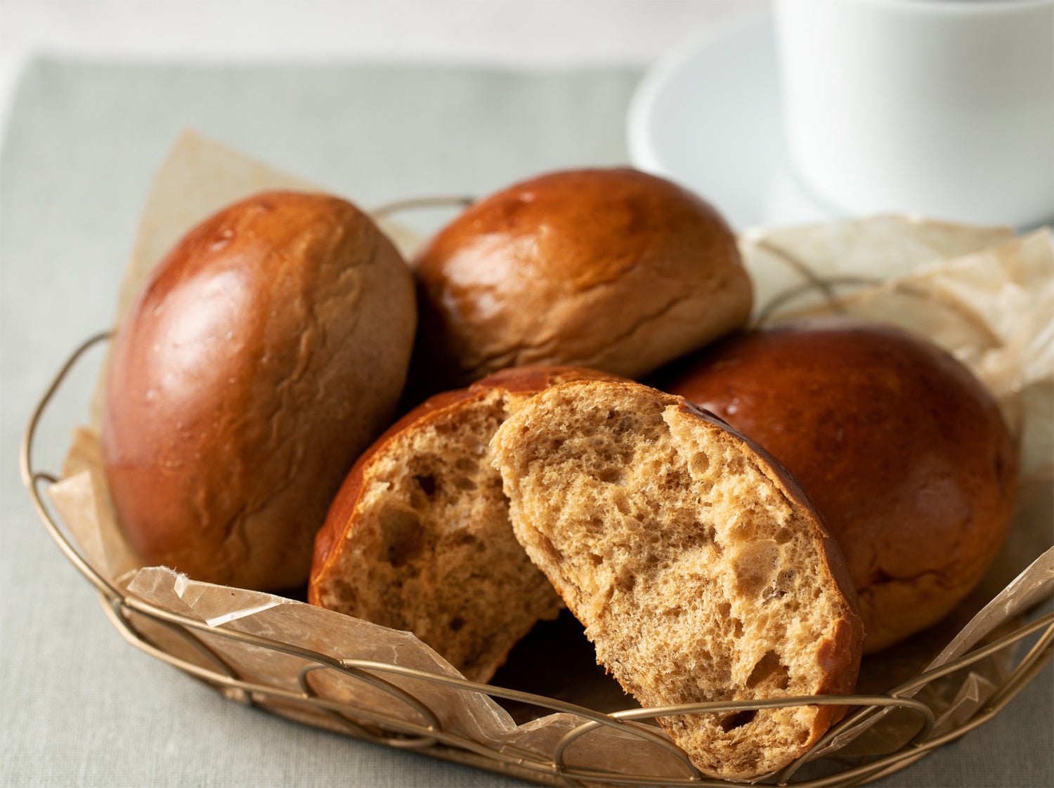 西表島産の黒糖と国産小麦を使用した、しっとりとした食感と自然な甘みが味わい深い黒糖パンです。ロールパンは少し温めて、しっとりふんわり。食パンはトーストしてさっくり、ふんわり。香ばしさがアップします