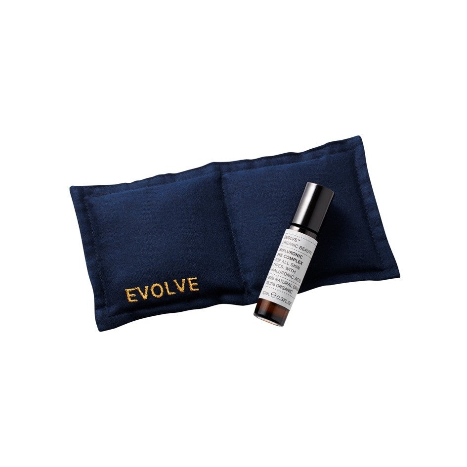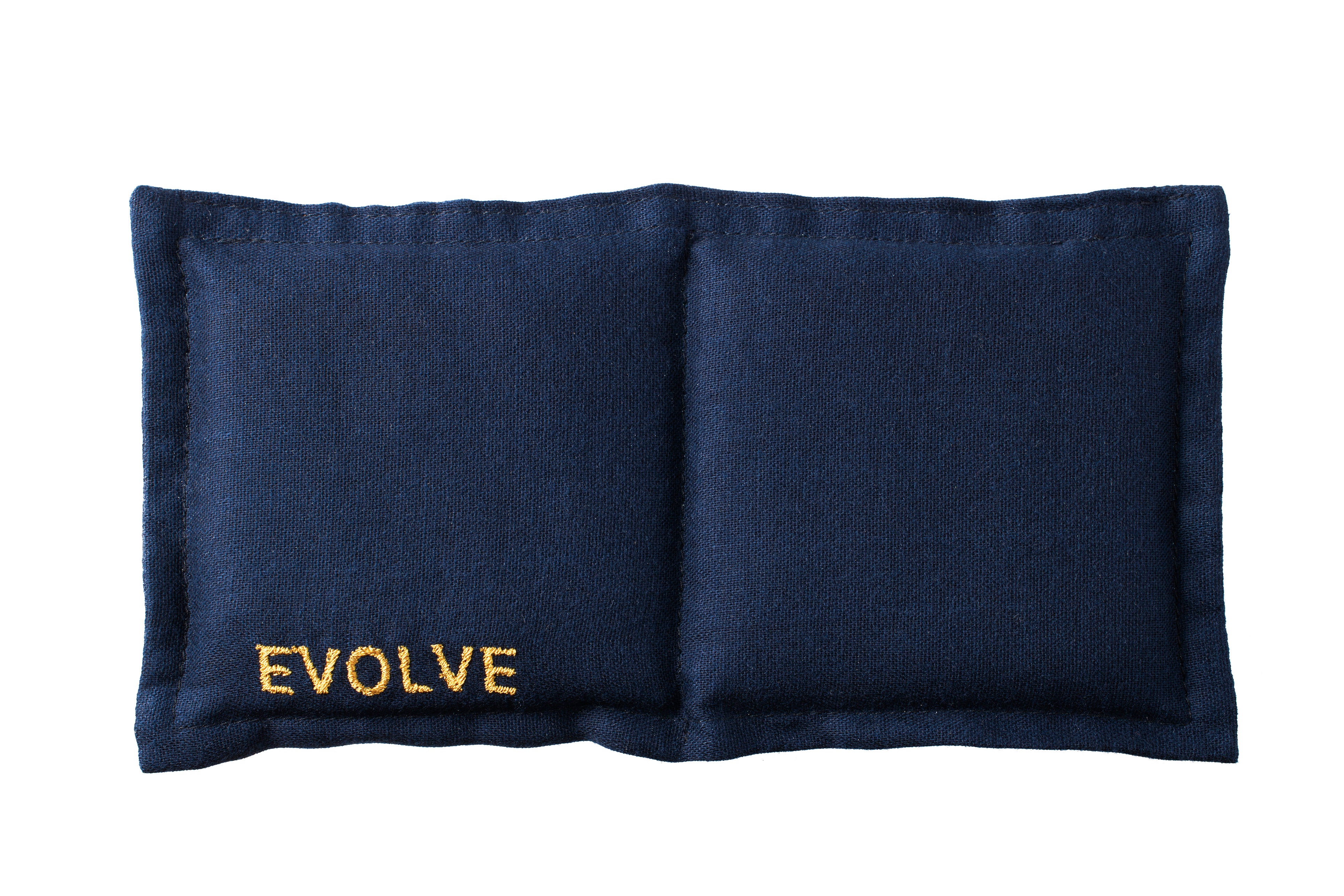 ロールオンタイプのセラムで目周りをコロコロ転がしていただいた後にアイピローの温冷作用でさらにリフレッシュ。レンジで温めて、冷蔵庫で冷やして、どちらも使用可な嬉しい温冷両用タイプです。中材には北海道・富良野市産のラベンダーを使用し、1日の疲れを癒してくれます。ガーゼ素材で目元にフィットしやすく心地よい設計もポイントです。EVOLVEロゴ刺しゅう入り。