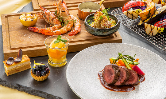 毎年大好評のBBQの季節がついに到来!今年のテーマはオーストラリア。キッチンチームが、本場の食材を使用し独自の調理法でダイナミックに仕上げます。「国産鯛のソテー レモンマートルと蟹のビスク」「オーストラリア産カンガルー肉のグリル タスマニアンペッパーとベリーソース」など、広大な大地と豊かな自然の中で育まれた旬の味覚をBBQスタイルでご堪能いただけます。食後には「トロピカルフルーツのミルフィーユ」「マンゴーコンポートとバジルのパンナコッタ」など、約14種のデザートをご用意。インターコンチネンタルホテル大阪で、オーストラリアへのグルメ旅をお楽しみください。
