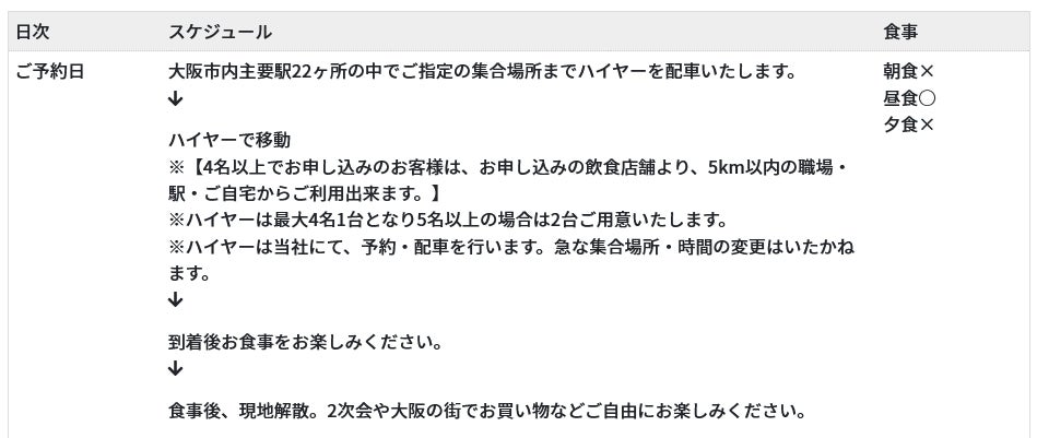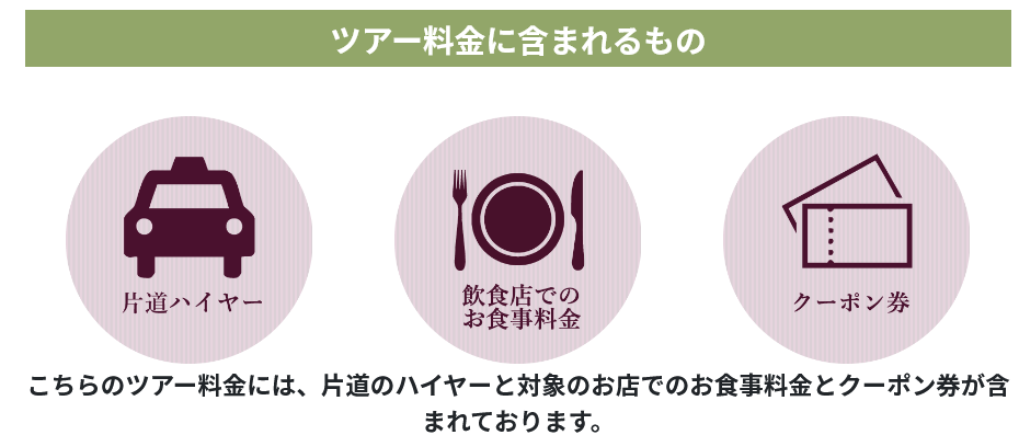 ※ハイヤーは当社にて、予約・配車を行います。急な集合場所・時間の変更はいたしかねます。
