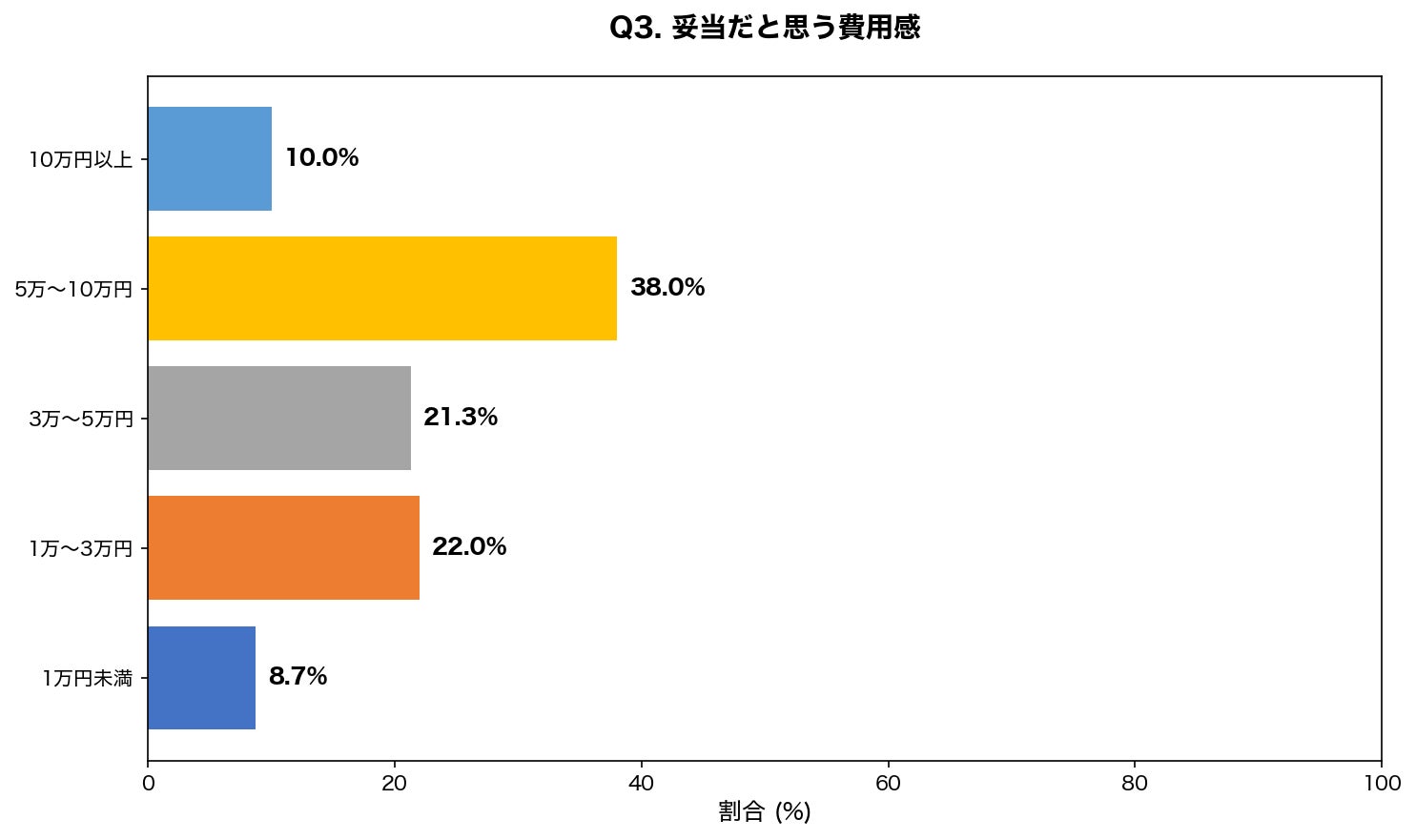 【調査結果】費用相場の認識は「5万〜10万円」が最多の38.0%