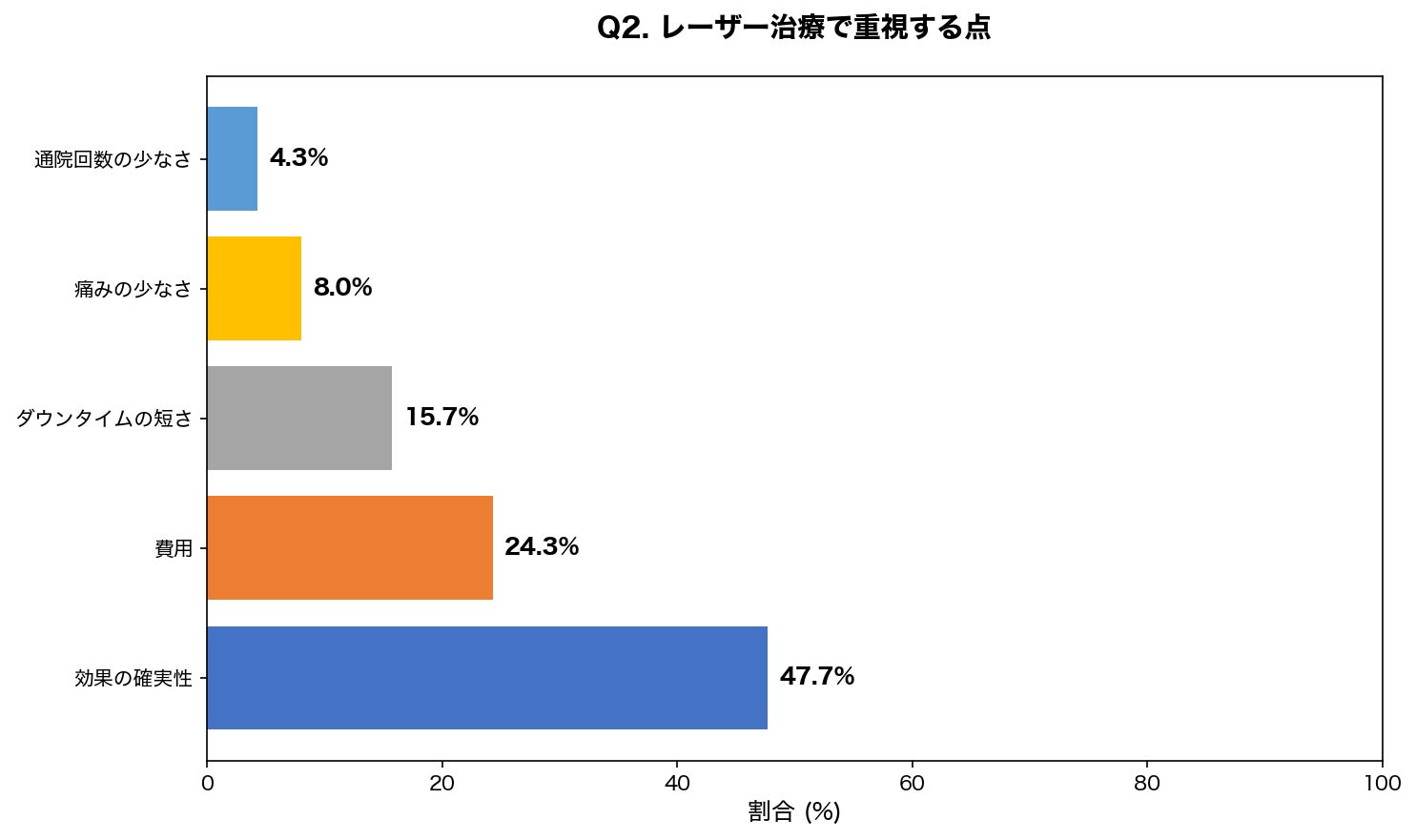 設問:シミ取りレーザー治療を検討する際、最も重視するポイントは何ですか?