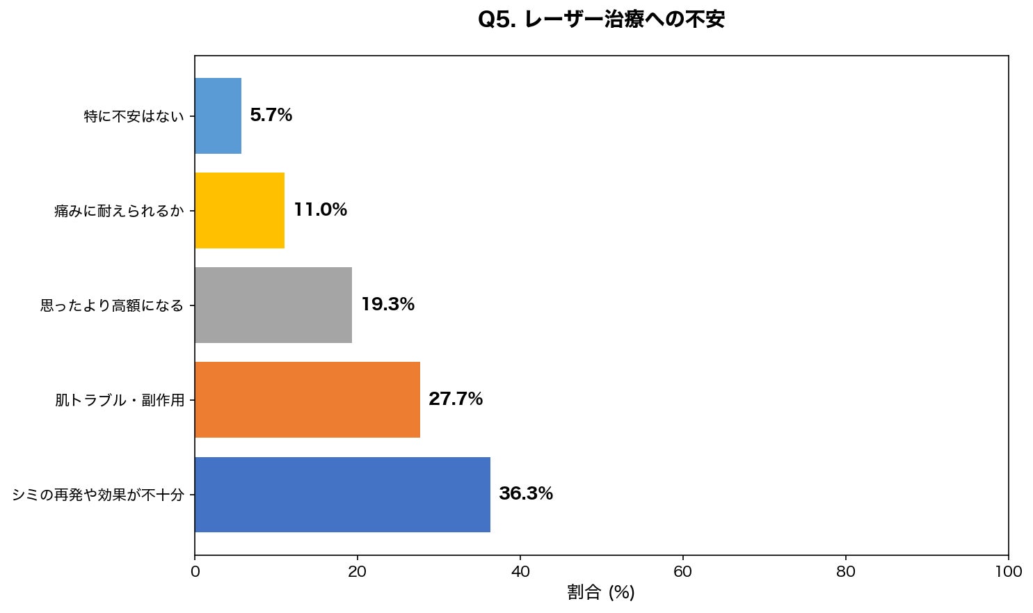 設問:シミ取りレーザー治療に関して、最も不安に感じることは何ですか?