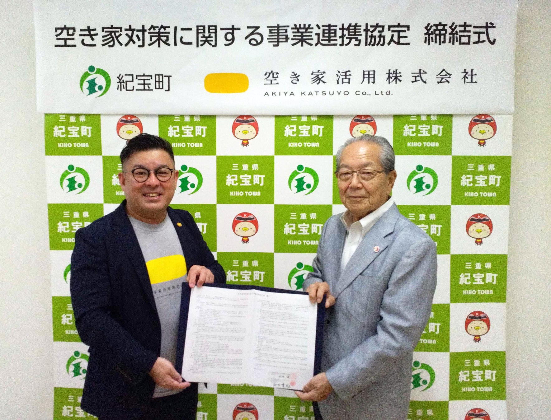 空き家の所有者、地域、事業者、自治体を繋ぐマッチングプラットフォーム「アキカツナビ」を運営する空き家活用株式会社(本社:東京都港区、代表取締役社長:和田 貴充、以下アキカツ)は、2024年10月1日に三重県紀宝町と「空き家対策に関する事業連携」を締結しました。