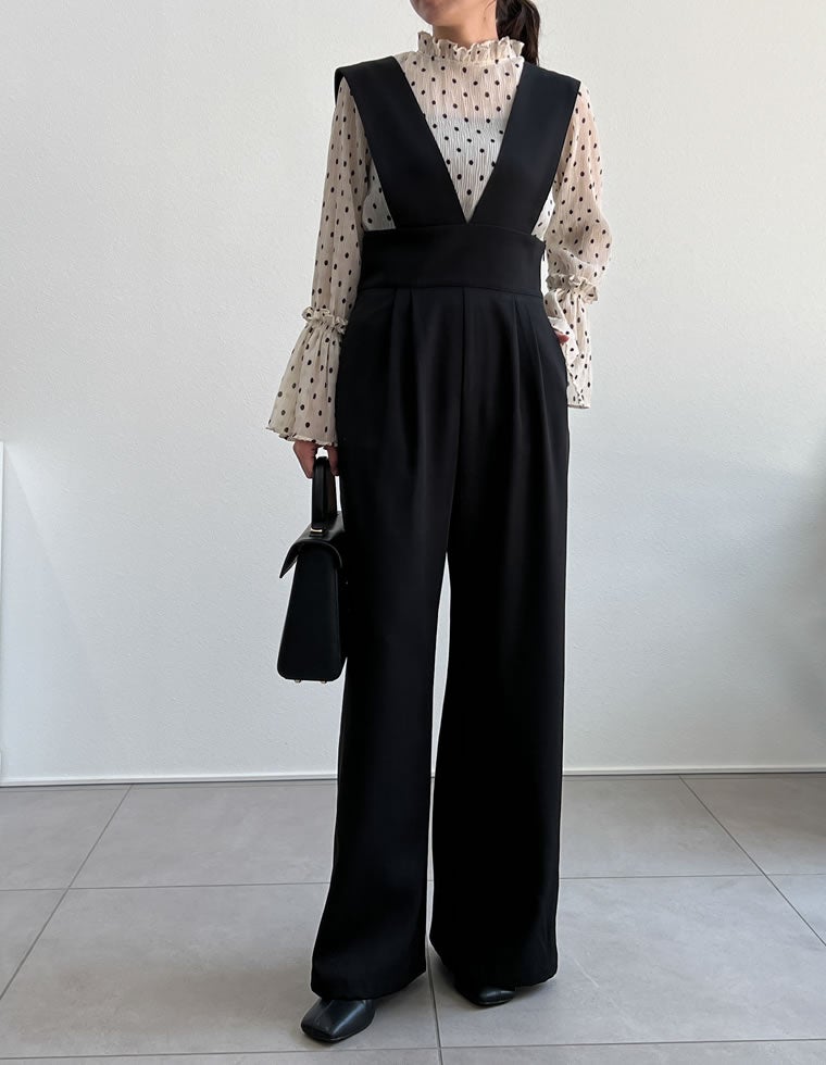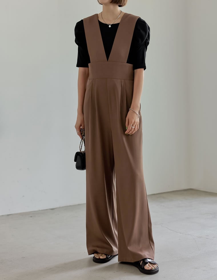 着るだけで、自然と美脚効果UPする「Vネックオールインワン」