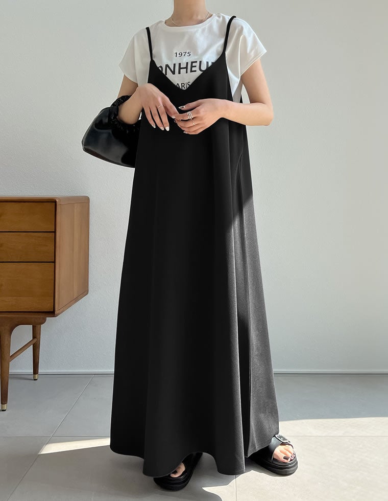 マタニティワンピースとしても話題の「ジョーゼットポンチフレアキャミワンピース」