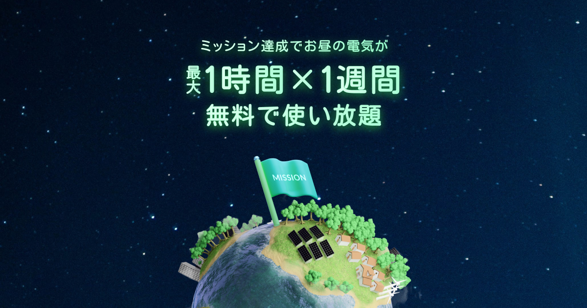 スマートなアクションでお昼の電気が最大1時間×1週間無料になる「ゼロエネミッション」キャンペーンを実施
