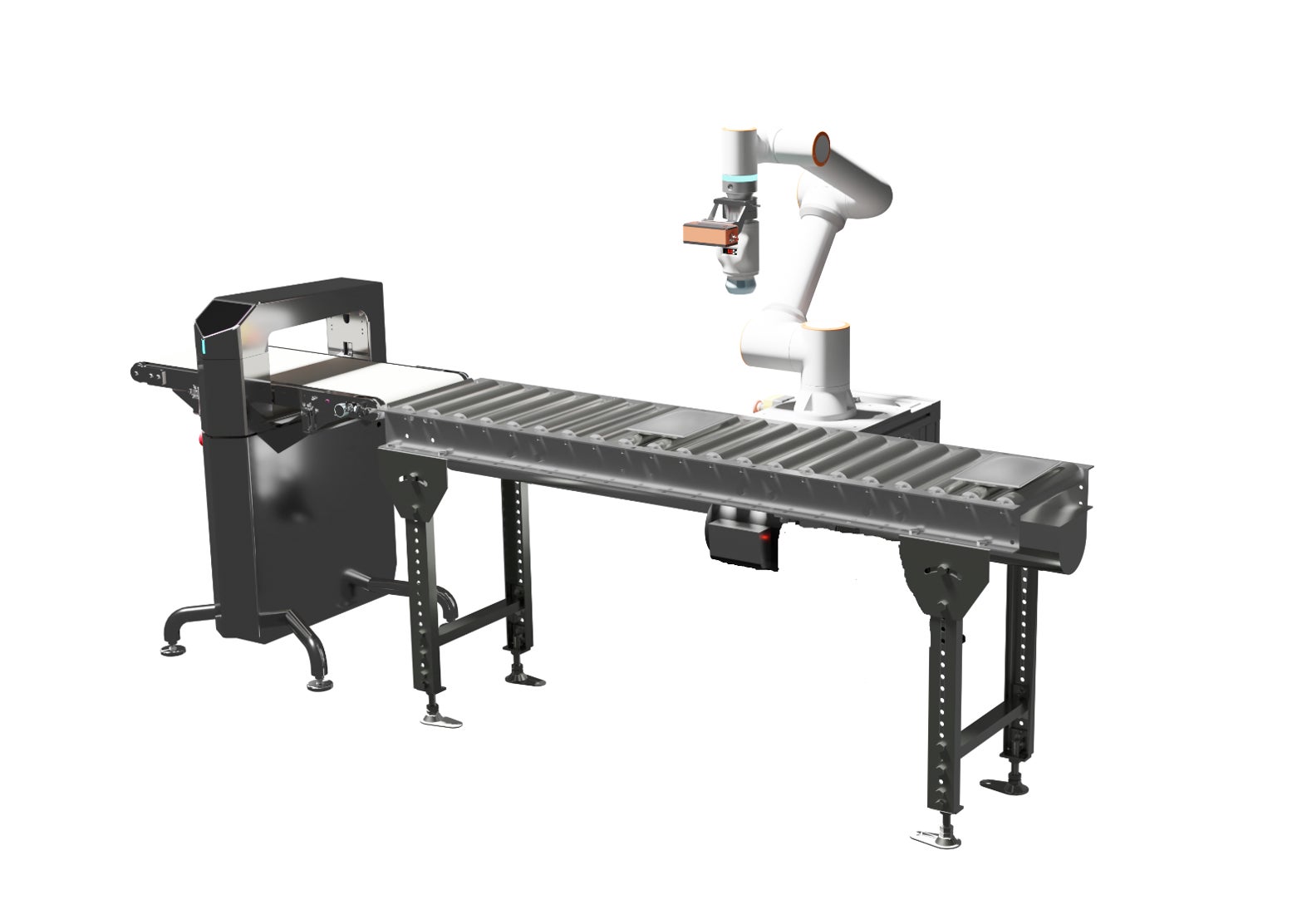当社はロボットの計画選定から製造現場への導入まで一気通貫でのサポートもしており、アルミ包装対応の金属検出器「Tecnoeye®」との接続、前後の搬入出システムを含めたトータルソリューションでの提供も可能。また、産業用ロボット10台以上を取り揃えた当社テストセンターにおいて、顧客ごとに異なる被測定物に対する測定の精度や動作範囲の試験を実施し、ZYXerを搭載したシステムの導入を支援します。