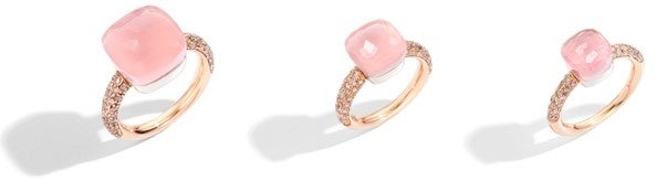リング「ヌード」:K18RG×K18WG×ローズクォーツ×カルセドニー×ブラウンダイヤモンド (左から) 660,000円、528,000円、385,000円 (税込)