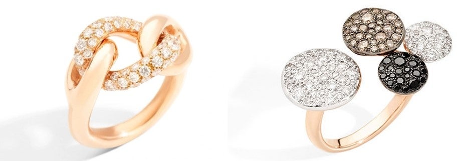 リング「イコニカ」: (左から)K18RG×ダイヤモンド 726,000円、K18RG×ブラウンダイヤモンド 473,000円(税込)