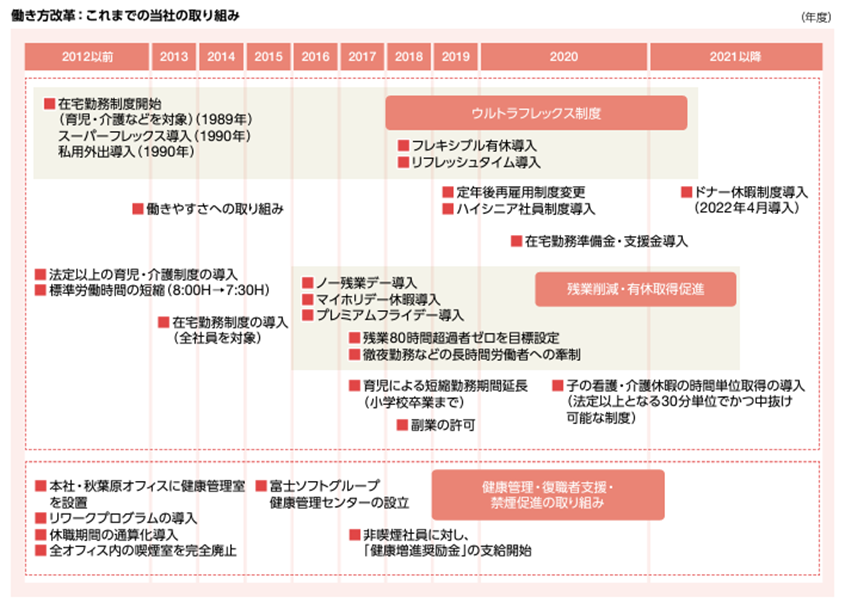 富士ソフトは今後も、「働き方改革のトップランナー」として、社員一人ひとりが働きやすい環境の実現を目指してまいります。