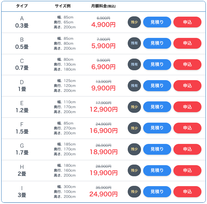 荷物以上に大きな部屋を借りてしまうことや、狭すぎて荷物が入らなかったなんていうトラブルを回避できます。