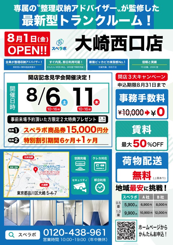 【8月1日(月)オープン】見学から契約、解約まで完全非接触・非対面、お申し込みからご利用まで最短1時間!都内にて絶賛運営中のトランクルーム【スペラボ】が品川区大崎駅西口に出店!