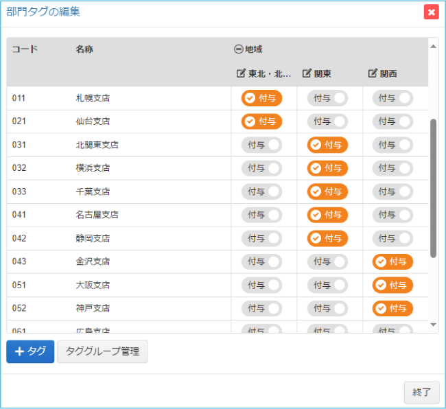 『マルチ部門タグ機能』では、その名の通り、企業の状況に合わせた複数の自由な粒度で、部門損益の集計と分析が可能となります。部門タグは制限なく地域や事業など企業の状態に合わせて自由に設定できます。