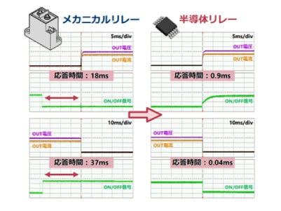 ON/OFF信号に対する動作時間が速く、メカニカルリレーと比べてON時は約1/20、OFF時は約1/1000の応答時間短縮を実現。
