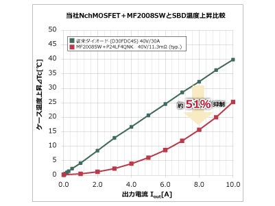 従来ダイオード※2と比較し、温度上昇を約51%抑制させることが可能。