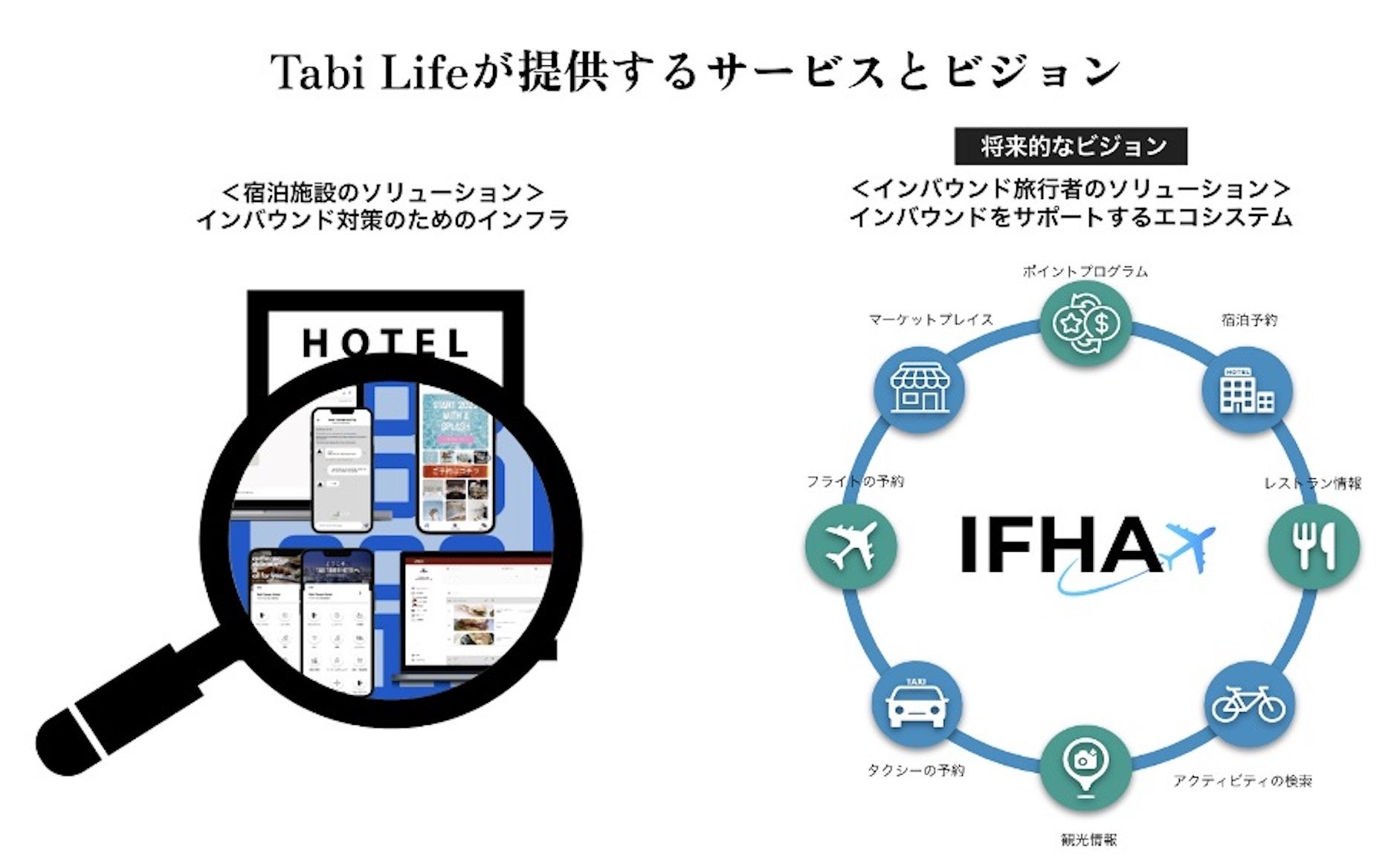 Tabi Lifeは、宿泊業界のインバウンド対策に特化したDXソリューションとして「インバウンドファーストホテルアライアンス(以下、IFHA)」を運営する、旅行・宿泊業界におけるIT企業です。