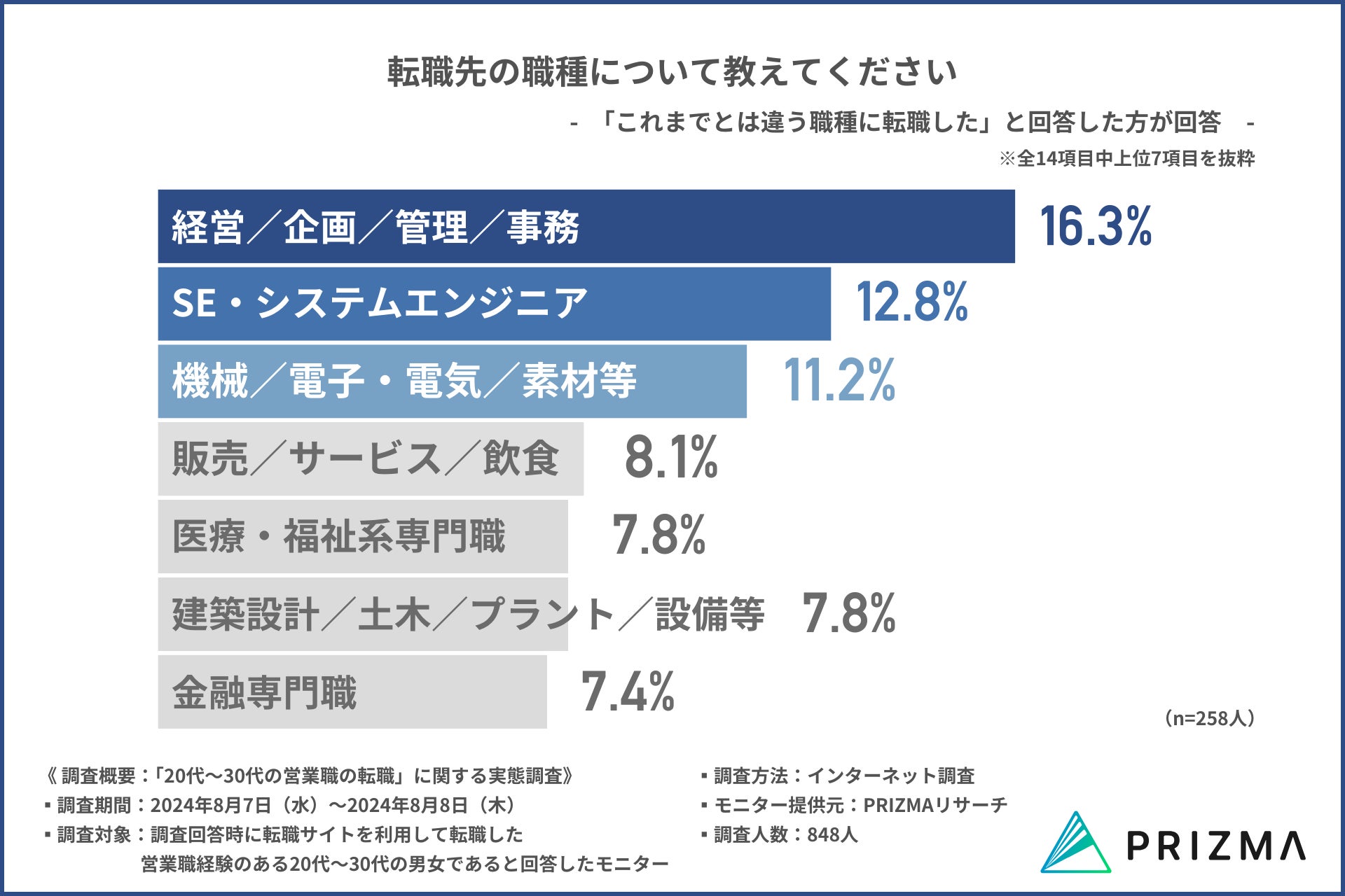 営業職からの転職「経営/企画/管理/事務」が最も多い結果に