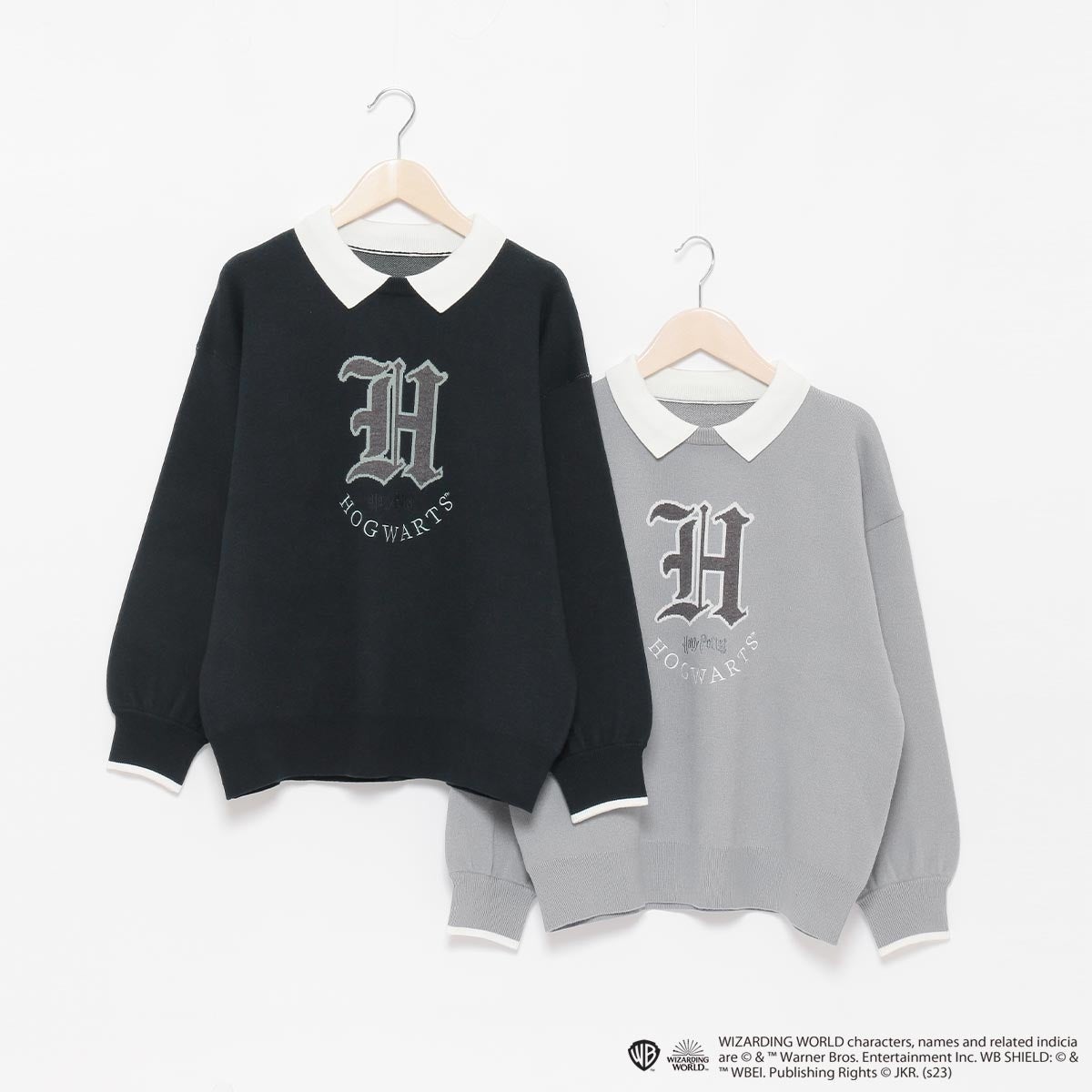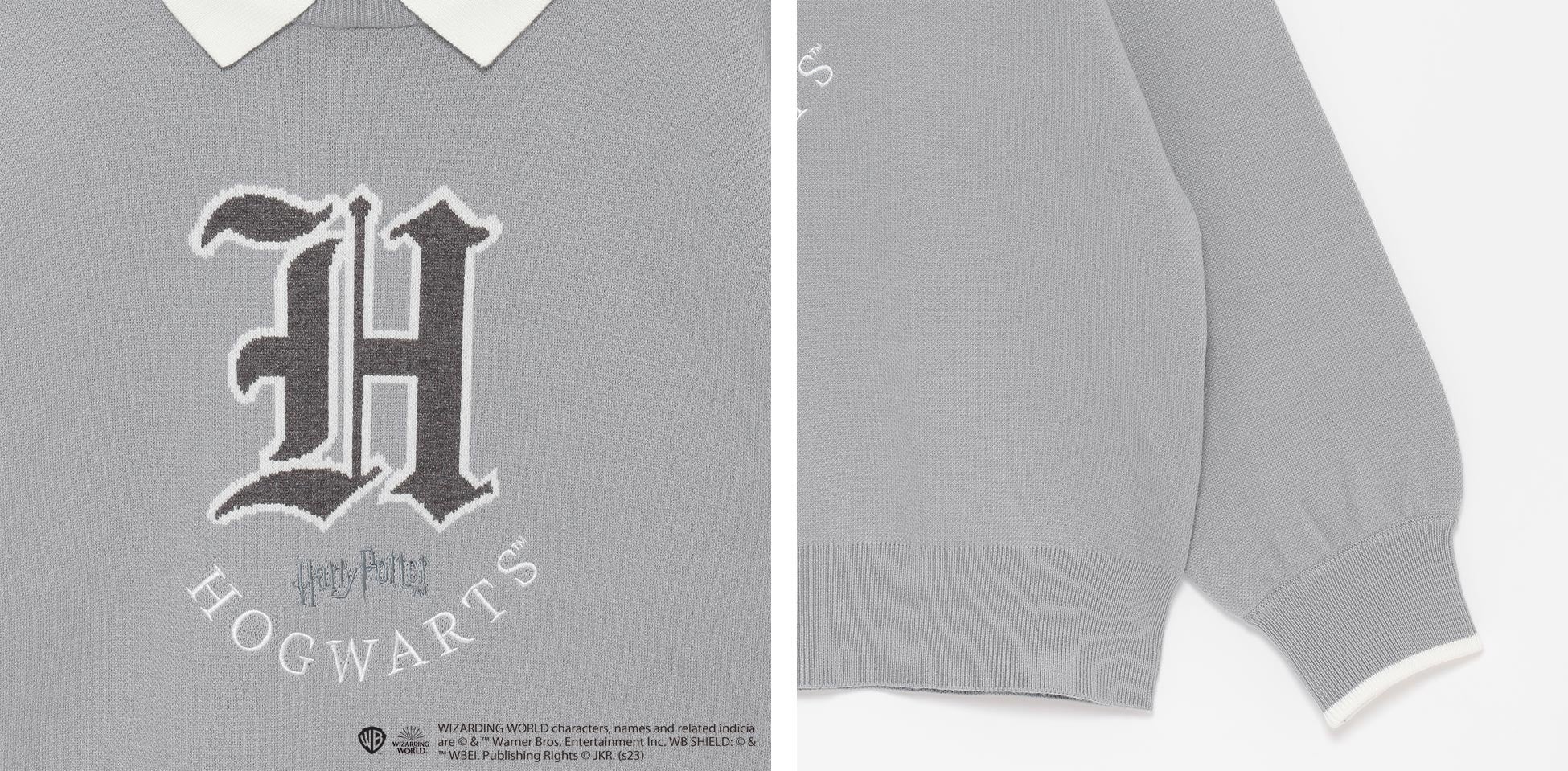 ニットプルオーバーは、ホグワーツの魔法魔術学校の頭文字「H」紋章をジャカードと刺繍で大胆に表現。