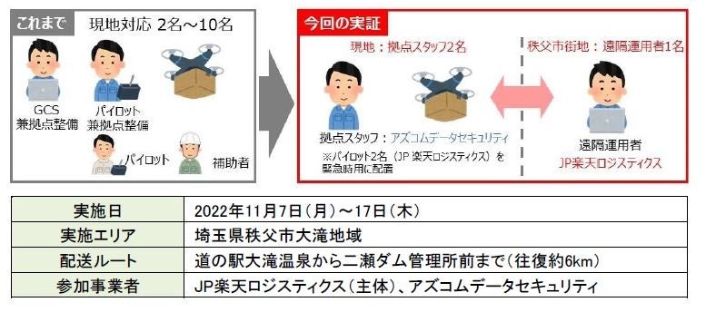 (注1)2020年11月6日に設立。2022年12月20日現在の構成員は、秩父市、ゼンリン、三菱総合研究所、JP楽天ロジスティクス、西武ホールディングス、西武鉄道、西武観光バス、アズコムデータセキュリティ、オプナス、早稲田大学、東京電力パワーグリッド、本庄早稲田国際リサーチパーク、ヤマト運輸、佐川急便、日本郵便の15者。本協議会では、物流、生活交通、観光交通、医療等の多様な分野のサービスについて、「ドローン物流」「遠隔医療」「MaaS」(貨客混載・EVカーシェアリング)などの先端技術を活用してヒトとモノの移動を最適化・効率化し、Society5.0社会の実現に向けた事業モデルを構築することを目指しています。