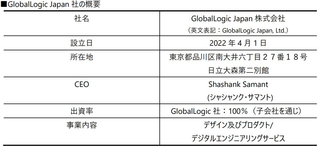 *3: GlobalLogic Japan社は、GlobalLogic社の100%子会社として、日本で新規に法人設立したもの。