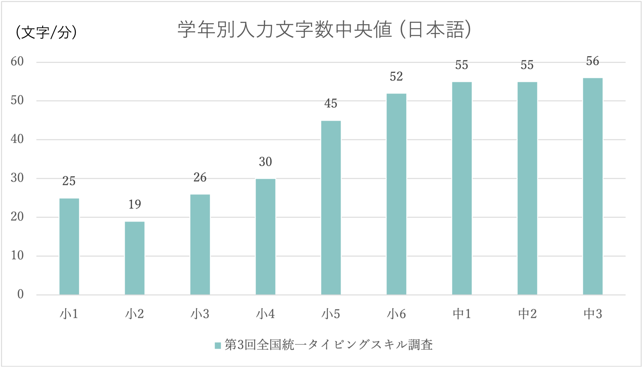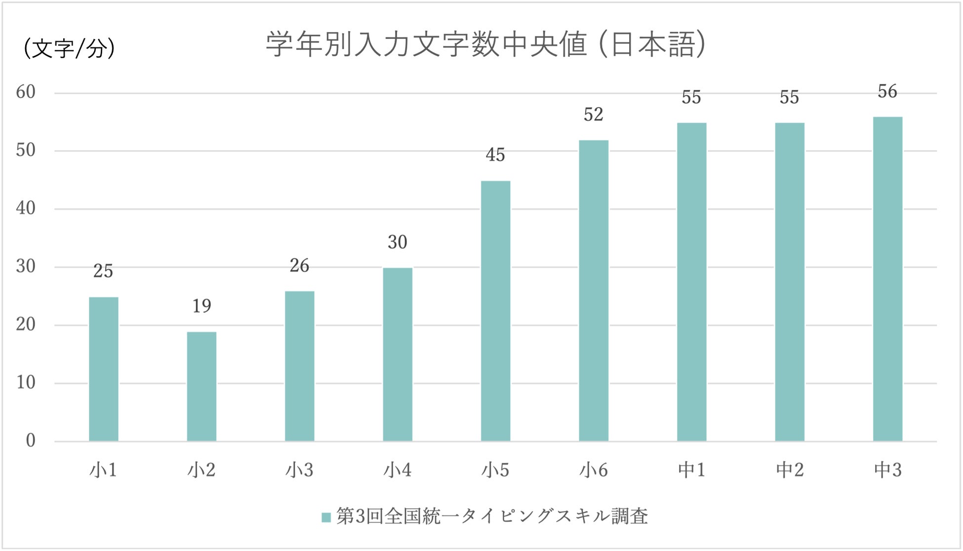 小学6年生~中学3年生の1分間の入力文字数が50文字以上に!