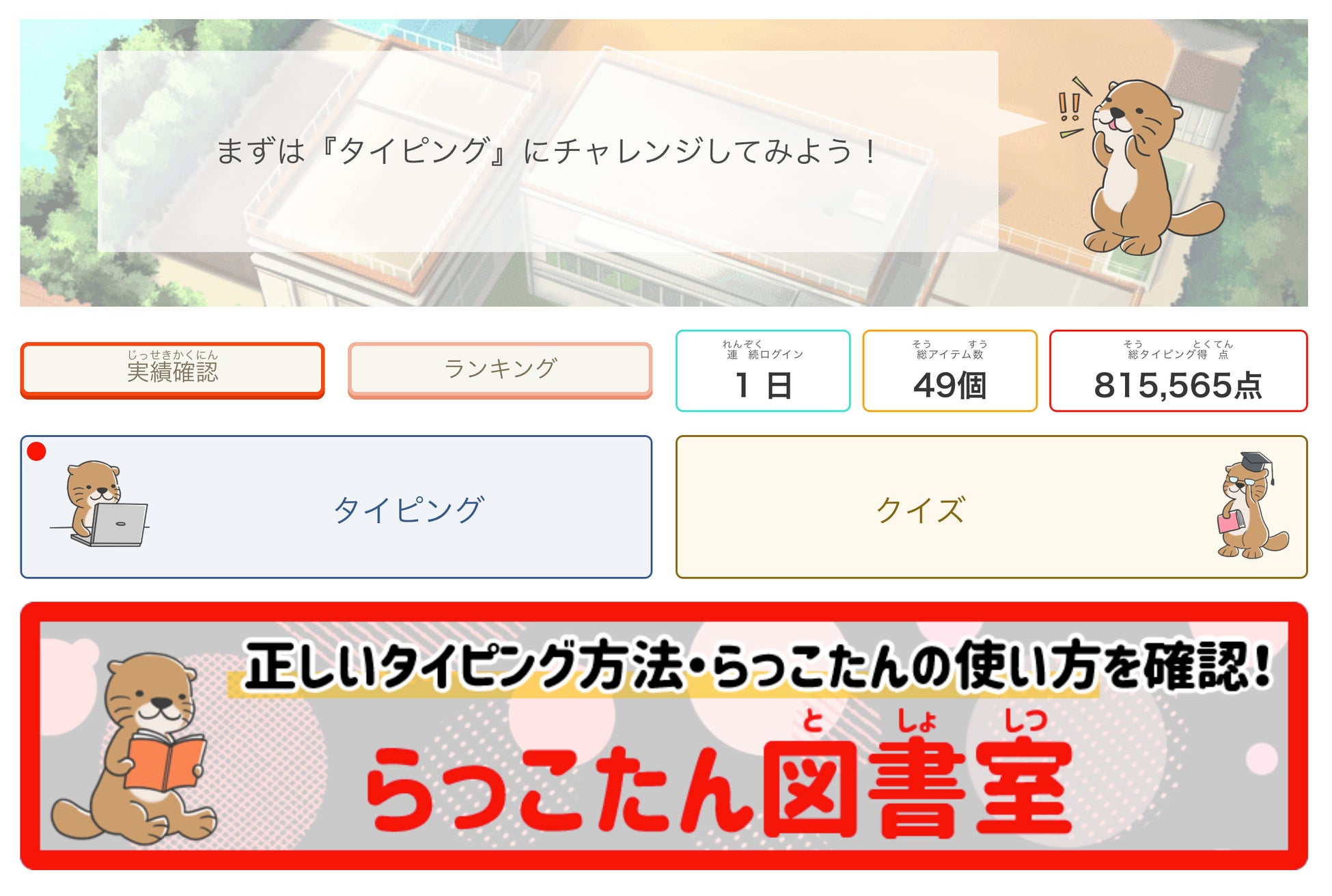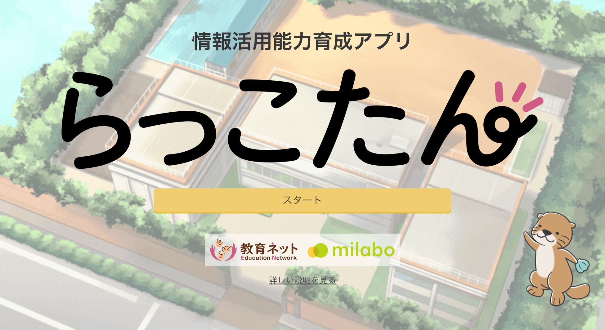 らっこたんとは、「株式会社 教育ネット」と「株式会社 ミラボ」が共同で開発している、情報活用能力を身につけることができるクラウド型デジタル教材です。AIを活用して、タイピングや情報活用に伴う基本的な知識を効率的に習得することができます。