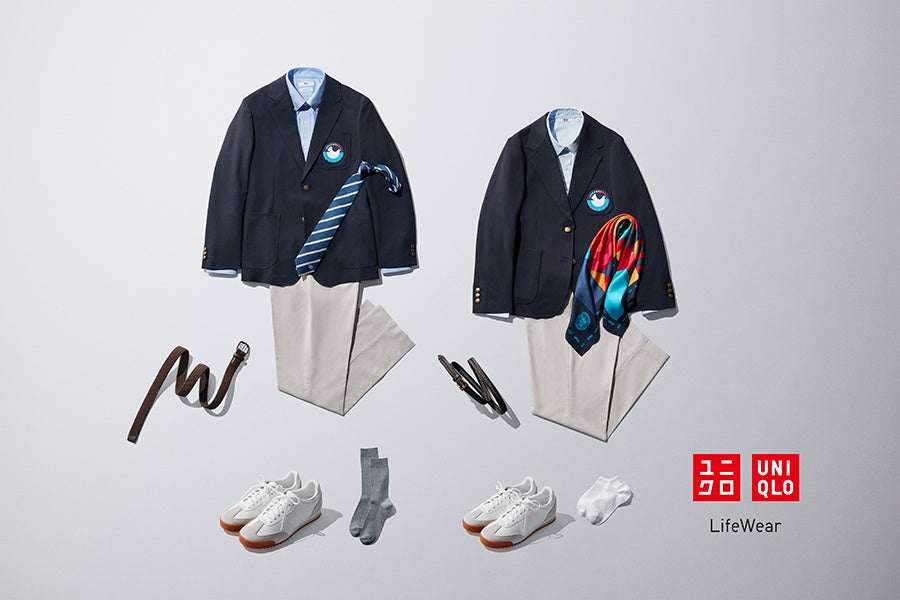 国連パビリオンにとけこむ伝統的なプレッピースタイルをベースに、シルエットやディテール、素材感にこだわり、現代にふさわしいベーシックスタイルにアップデート。万博開催の6か月間、アテンダントがより美しく快適に仕事ができるよう、上質で機能的な素材を採用しています。ジャケットとパンツは、ユニクロで人気の「感動ジャケット」「感動パンツ」の素材を採用。軽量、伸縮、速乾性のある快適な着心地を実現しました。メンズシャツは、高品質な極細糸を使用したなめらかで上質な生地でありながら、布帛のように見えるジャージー素材で、気心地の良さと動きやすさを追求。洗濯してもシワになりにくい、アイロンいらずのシャツで毎日のケアを軽減します。ウィメンズシャツは国連をイメージしたさわやかなブルーと白シャツを全員に提供。華やかなスカーフと合わせて、毎日の着こなしを楽しんでいただけます。