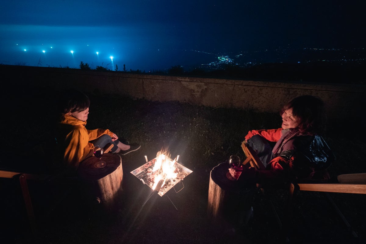 <おすすめプラン>「佐渡の大自然を満喫。ビストロディナー焚火サロンプラン」「高原の澄んだ空気の中で薪の爆ぜる音をBGMにワインやおつまみを片手に幻想的な火の揺らめきと満点の星空、そして眼下に広がる夜景に心癒される特別なひとときを」リラックスツイン 2名1室29.000円~1泊料金(税込)