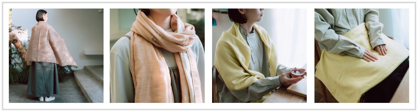 イン&アウトドアでも活躍するショールに、綿100%でありながら高機能な特許素材が採用されました。