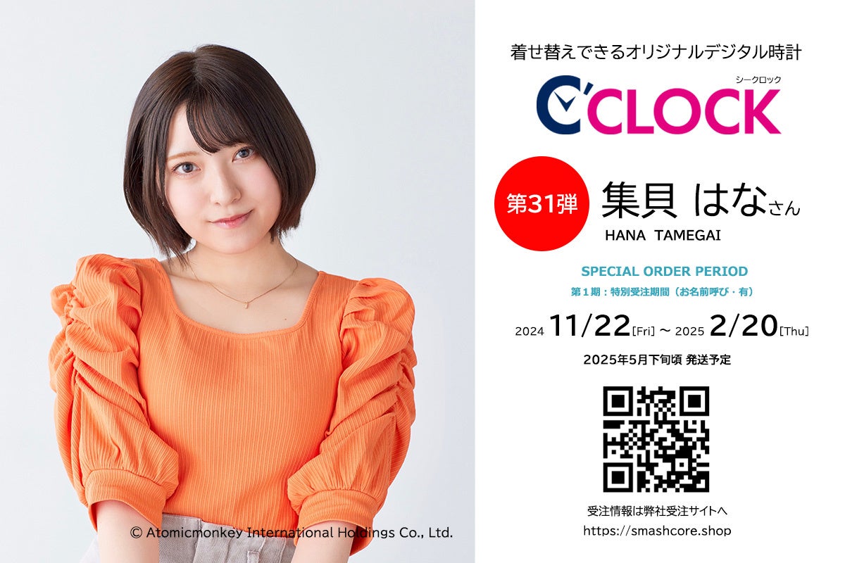 【Bluetooth対応にパワーアップ!】声優さんごとにデータの着せ替えが可能なデジタル時計「C'CLOCK」第31弾は集貝はなさん!11月22日よりスマッシュコアで受注開始!