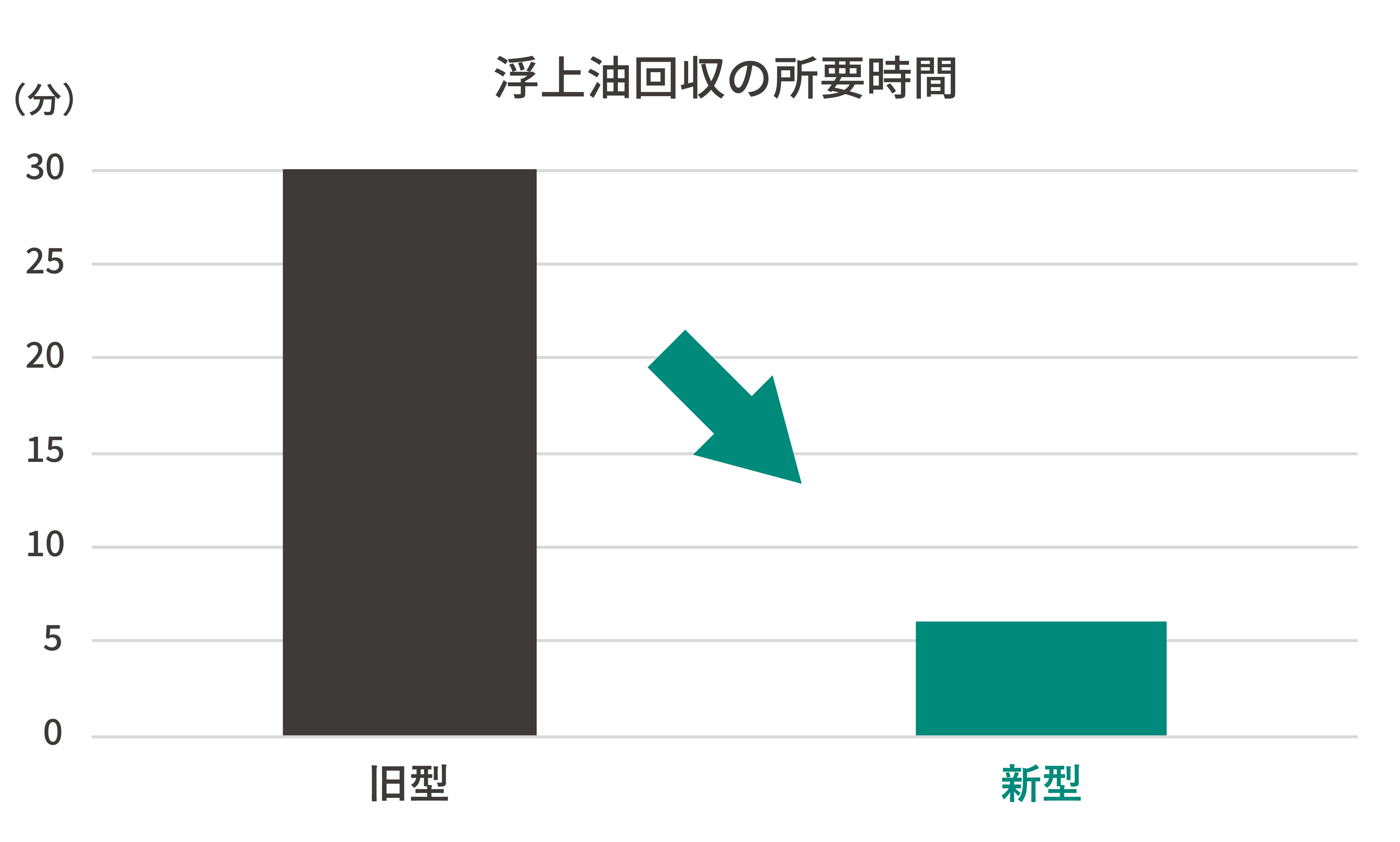 ※200Lクーラントタンク(2000×500×200mm)の液面が浮上油で満たされている状態で、旧型・新型それぞれ が浮上油を全回収する時間を比較。