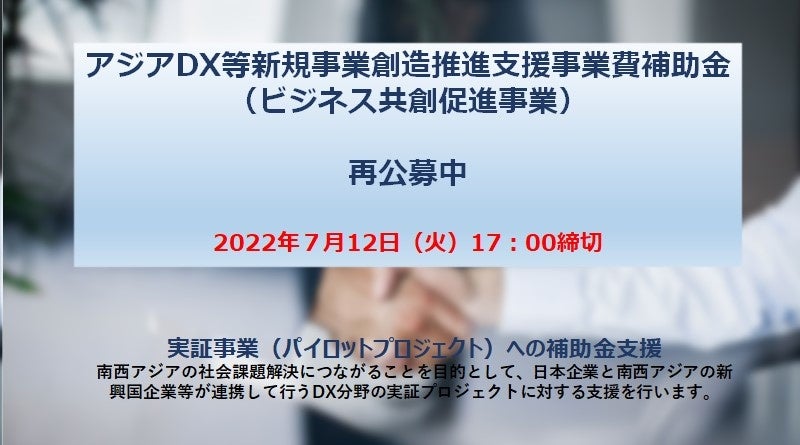 【補助金】南西アジアで新興国企業等と連携して実施するDX分野の実証プロジェクトを公募中!!