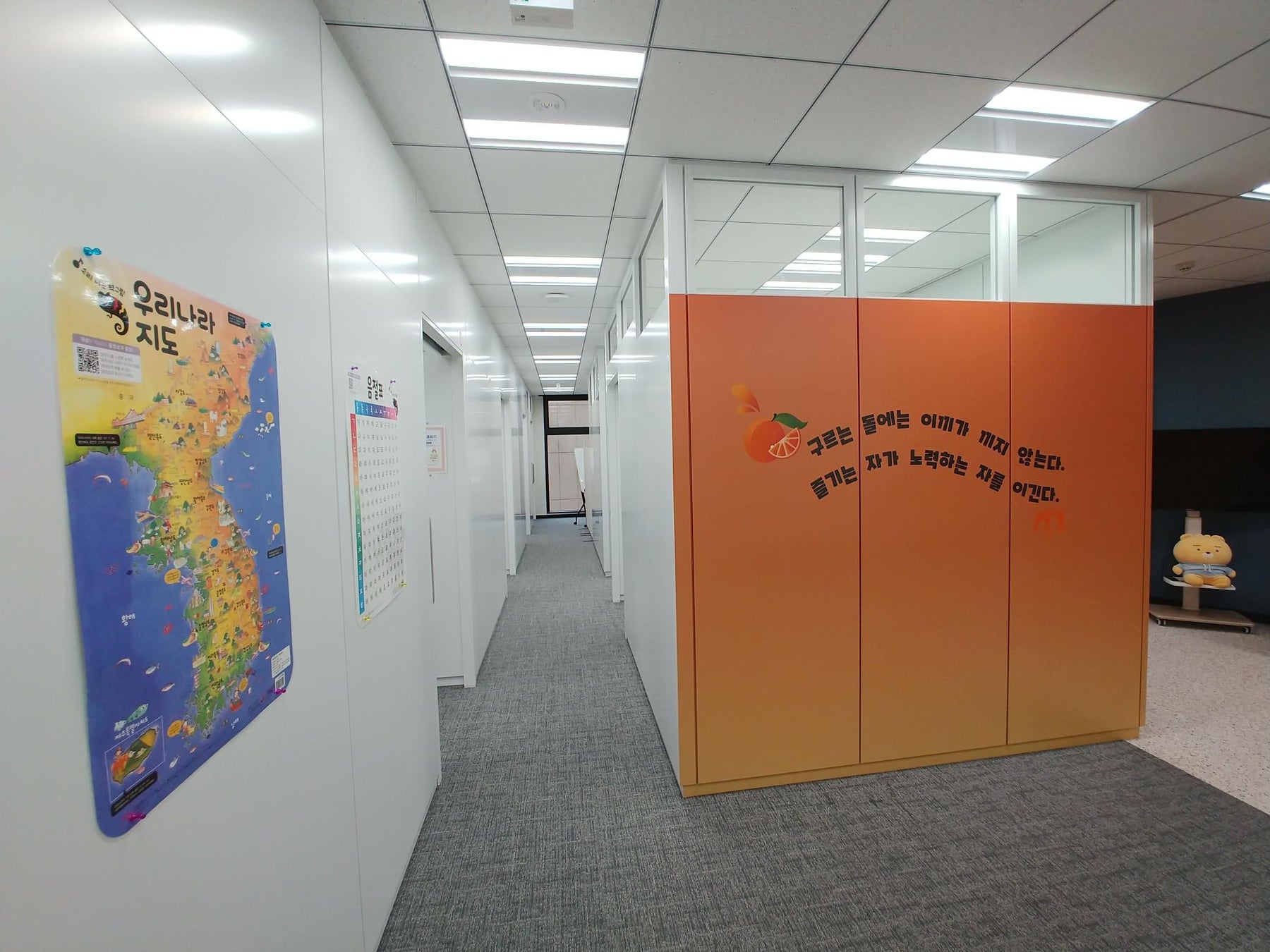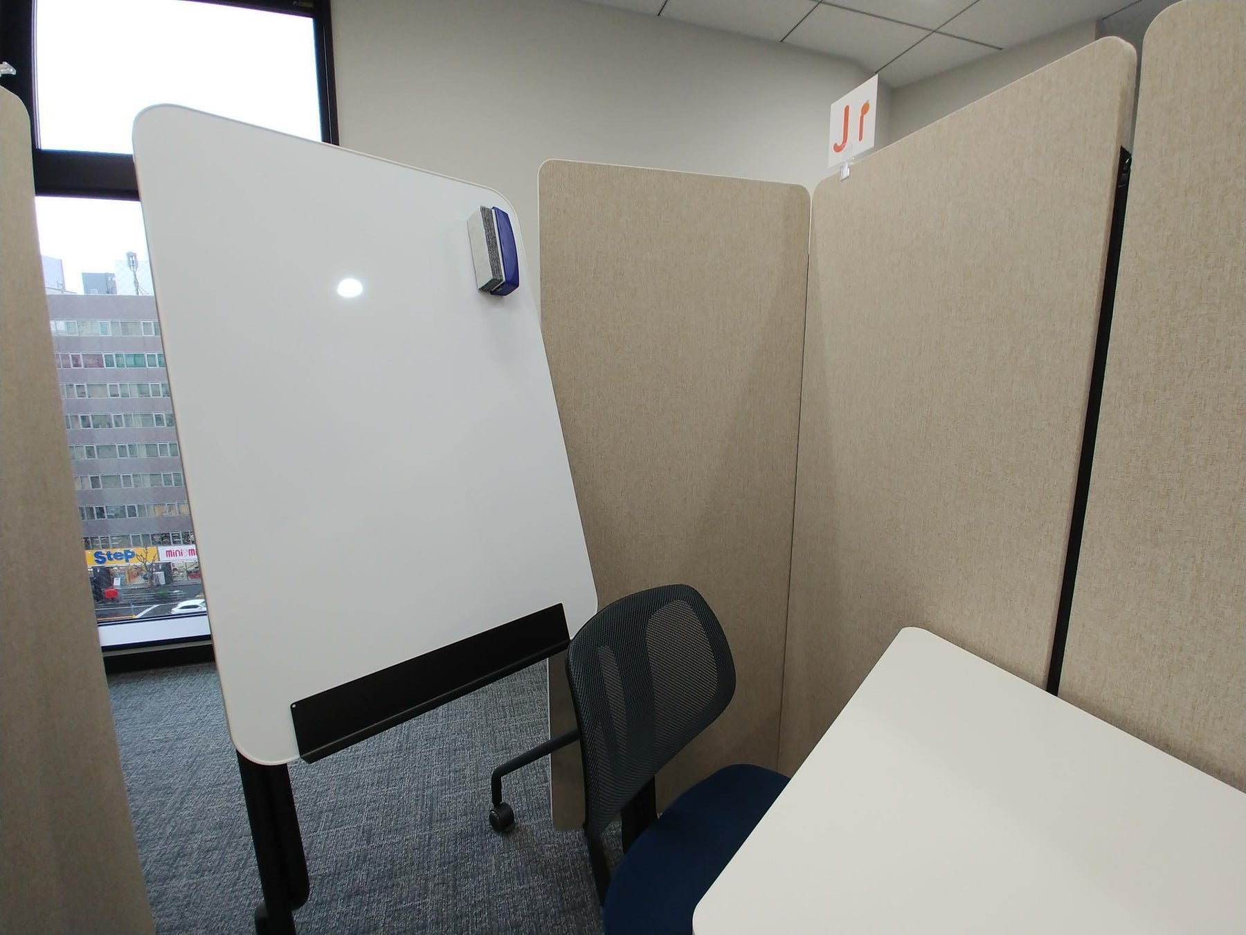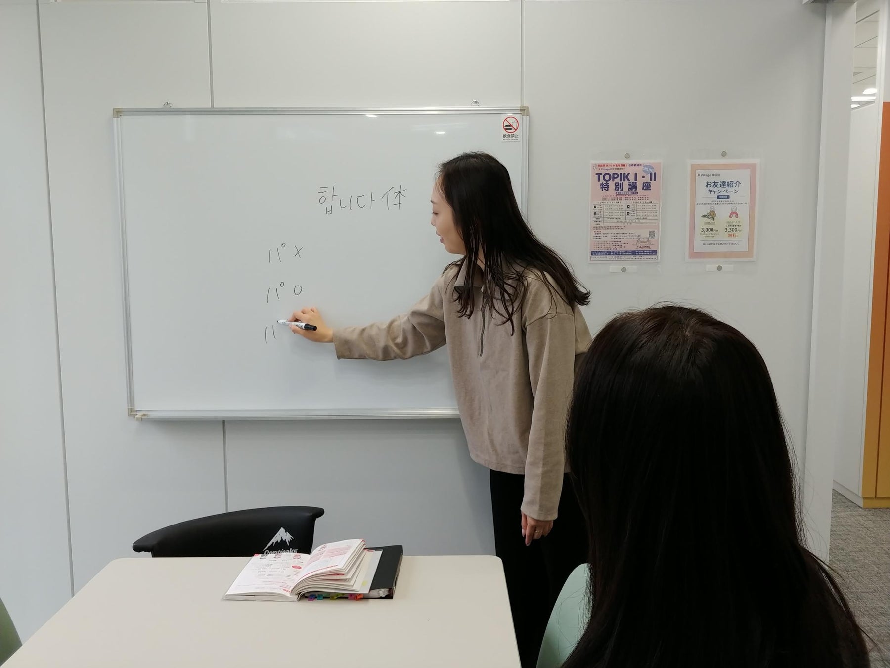 パーテーションで仕切られた教室では、経験豊富な講師とともに、自分のペースで韓国語学習を進めることができます。