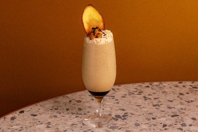 白ごまとさつまいもをベースに、隠し味にほうじ茶を加えた、秋らしいシェイクです。