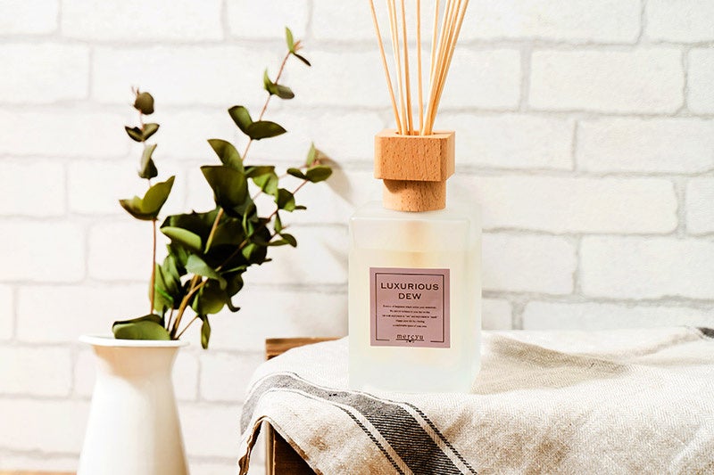 ゴールドの刻印が施されたラベルデザインや細部にこだわったウッドキャップは、シンプルな中でも高級感のあるアクセント。コンパクトな見かけ以上に大容量で、香りのある生活を長く楽しんでいただけます。