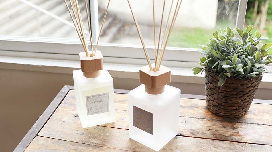 お部屋になじむ、シンプルで飽きのこないデザインのリードディフューザー。