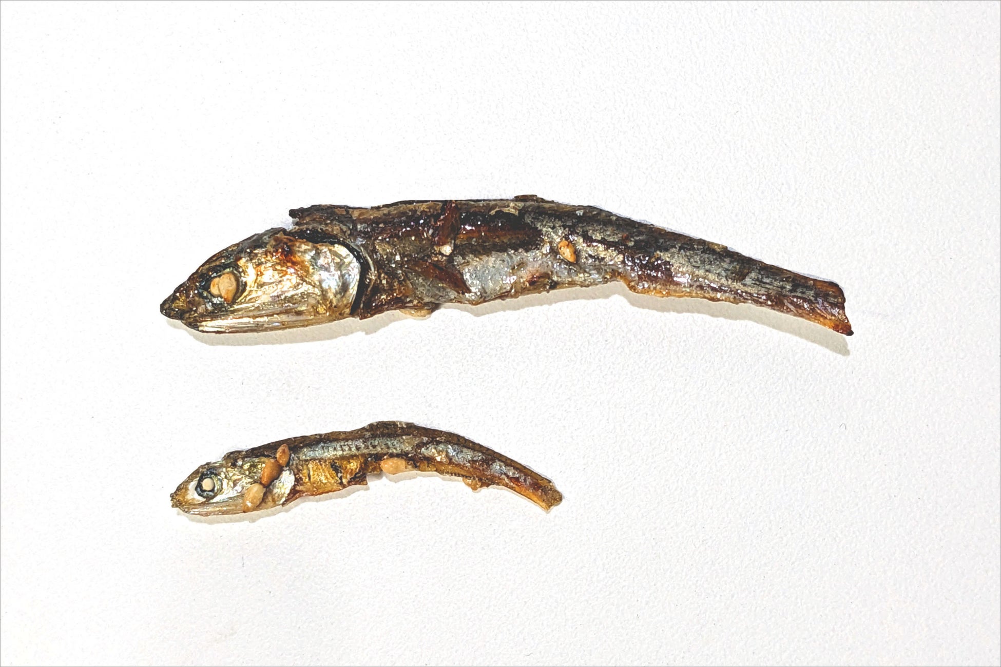 本商品は、大きめの国産片口いわしに甘めの味付けをした後、炙りのひと手間を加えた、香ばしい香りが特長のお菓子です。まるで七輪で炙ったかのような贅沢な風味を味わうことができる、高級感ある商品として開発いたしました。