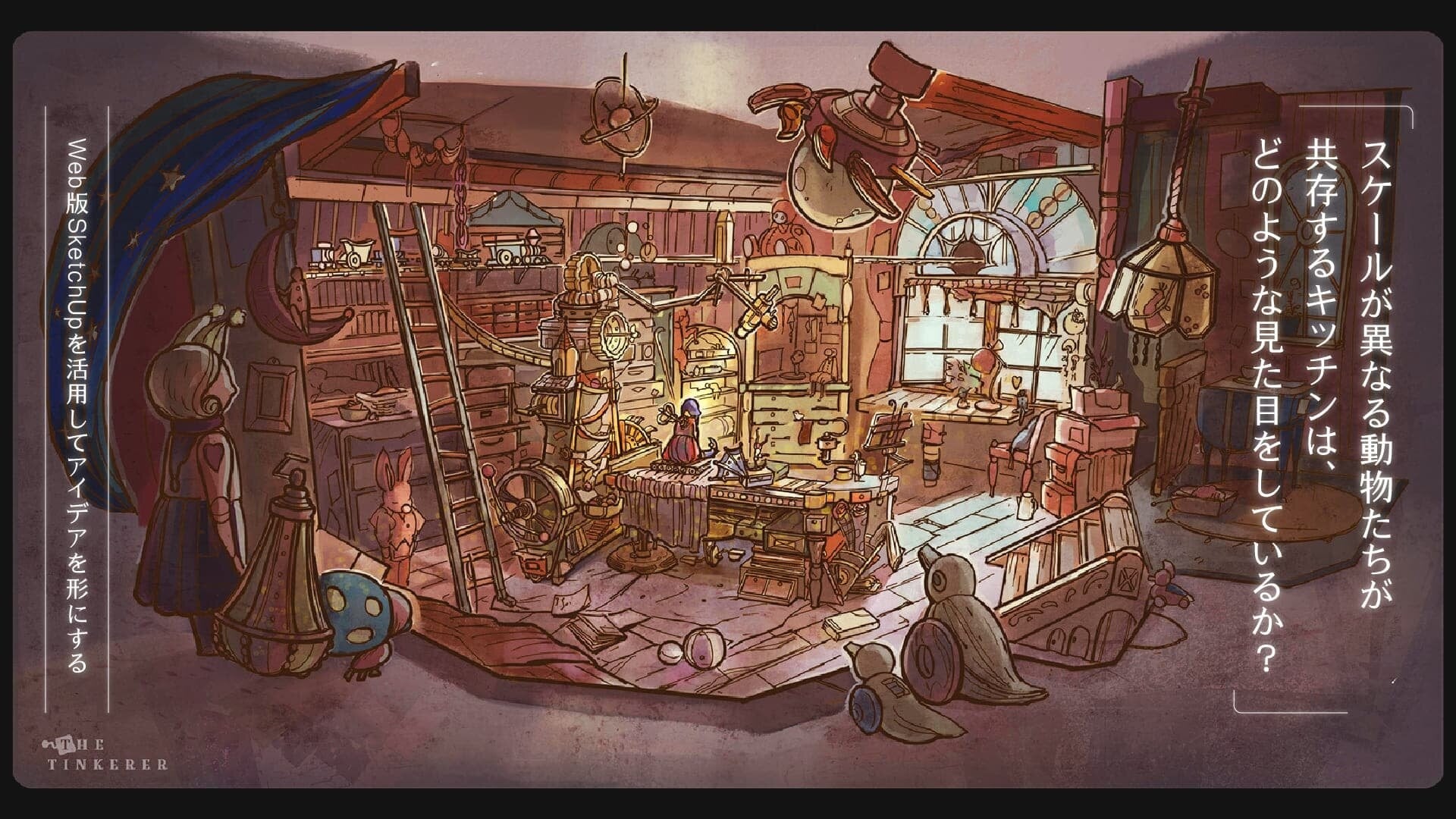 Web版SketchUpを活用し、アイデアからコンセプトスケッチへと仕上げる過程を解説していきます。「大きさが異なる動物たちが料理するための快適なキッチン」が課題です。彼らがどのように空間を利用するのかを想像しながら、魅力的なインテリアの可能性を探っていきましょう!