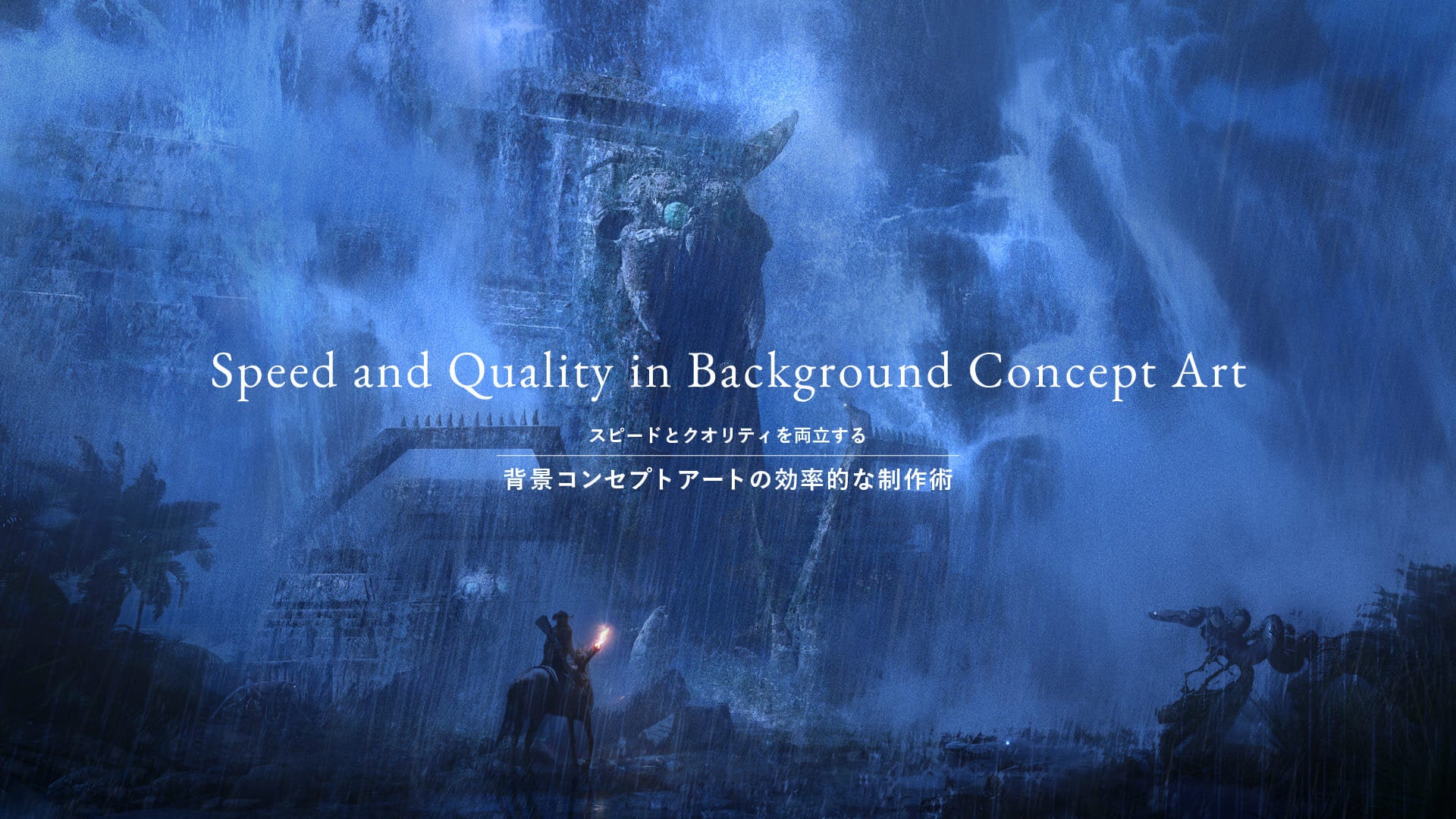 今回の講義では、建築物を含むファンタジー世界の背景コンセプトアートを題材に、3Dを使った町や自然の背景、エフェクト制作を「手間をかけず」「苦労せず」「とにかく速く」仕上げる方法を解説します。