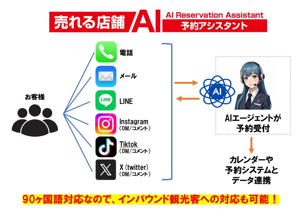 AIエージェントが90 か国語で「予約受付」を代行日本の全ての店舗に『売れる店舗AI予約アシスタント』提供開始のお知らせ