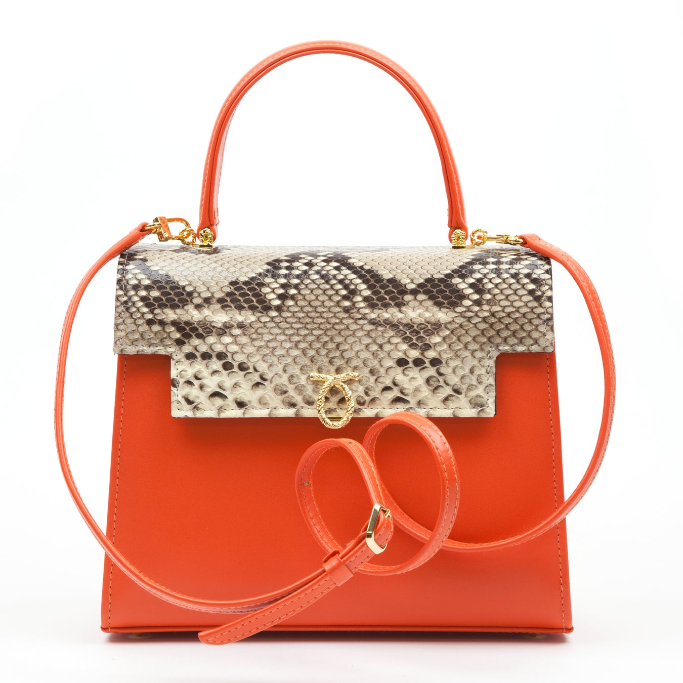 小ぶりなオープンブリーフケースタイプのハンドバッグ。