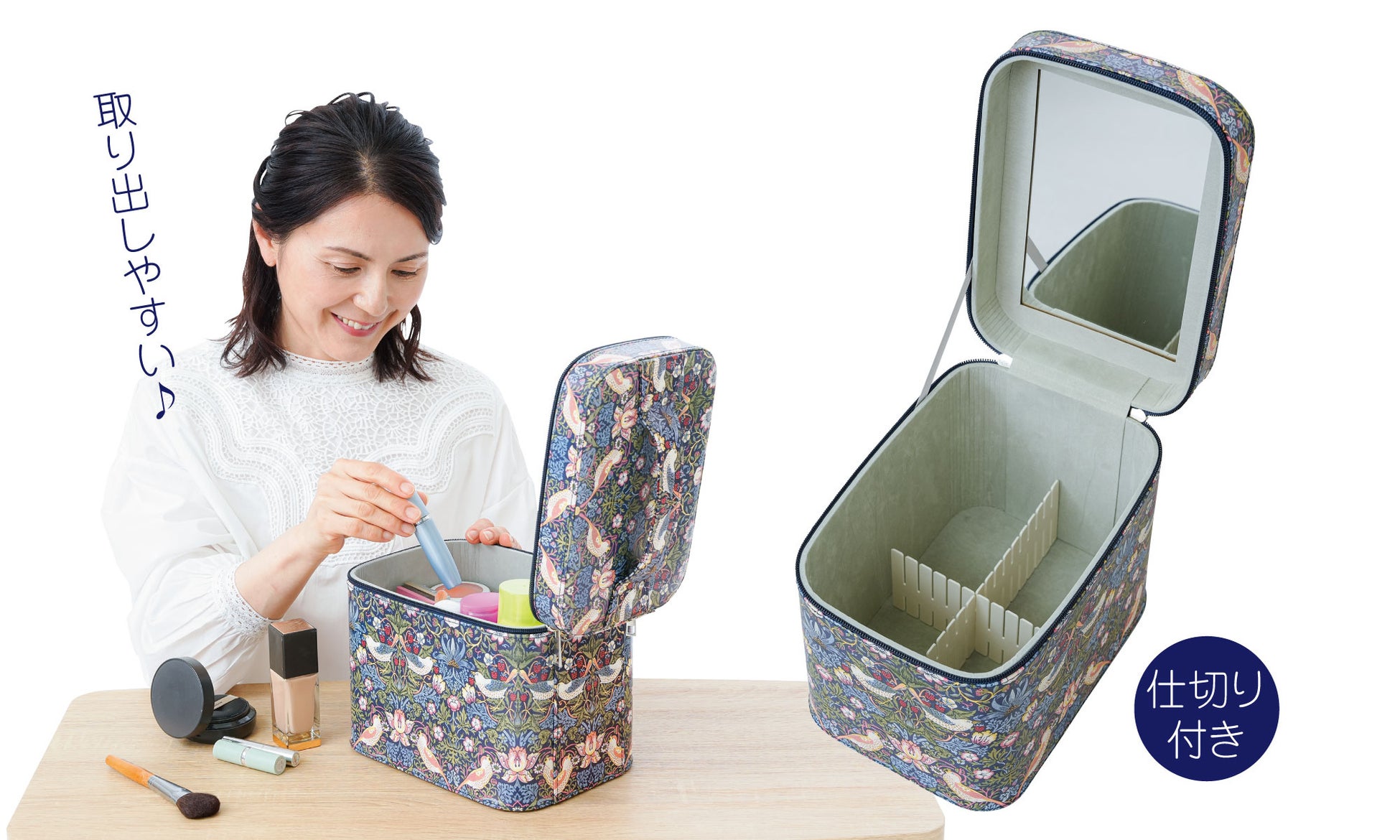 この美しい柄を全面にあしらったメイクボックスで、毎日のメイク時間をエレガントに過ごすお手伝いを。- 収納力が抜群!