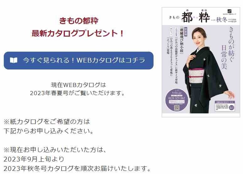 「きもの都粋」から最新カタログ「都粋カタログ2023秋冬号」が9月1日発行! カタログ請求スタート!