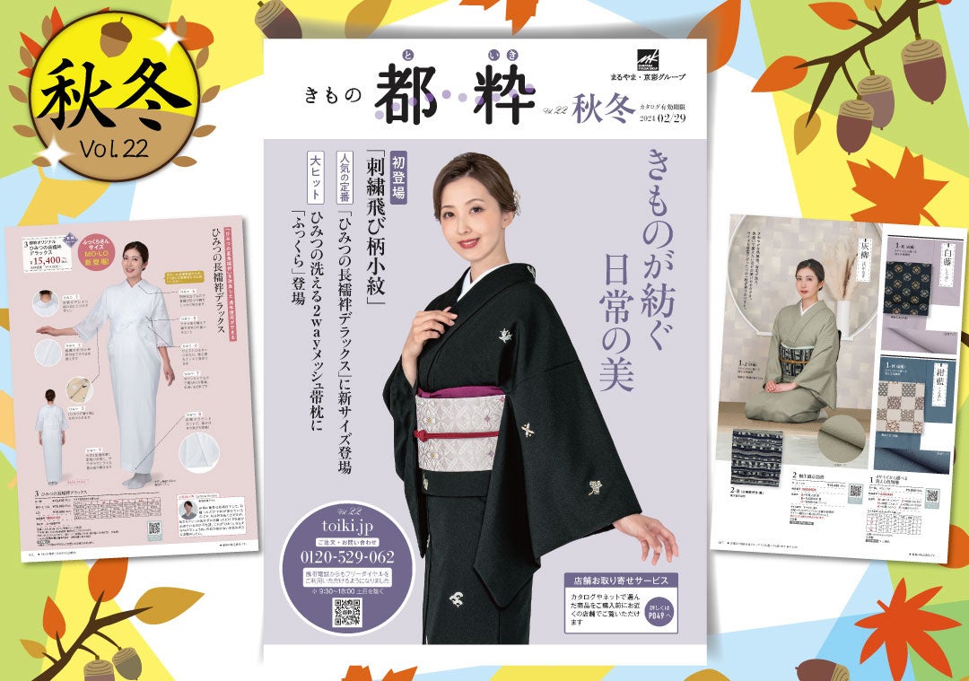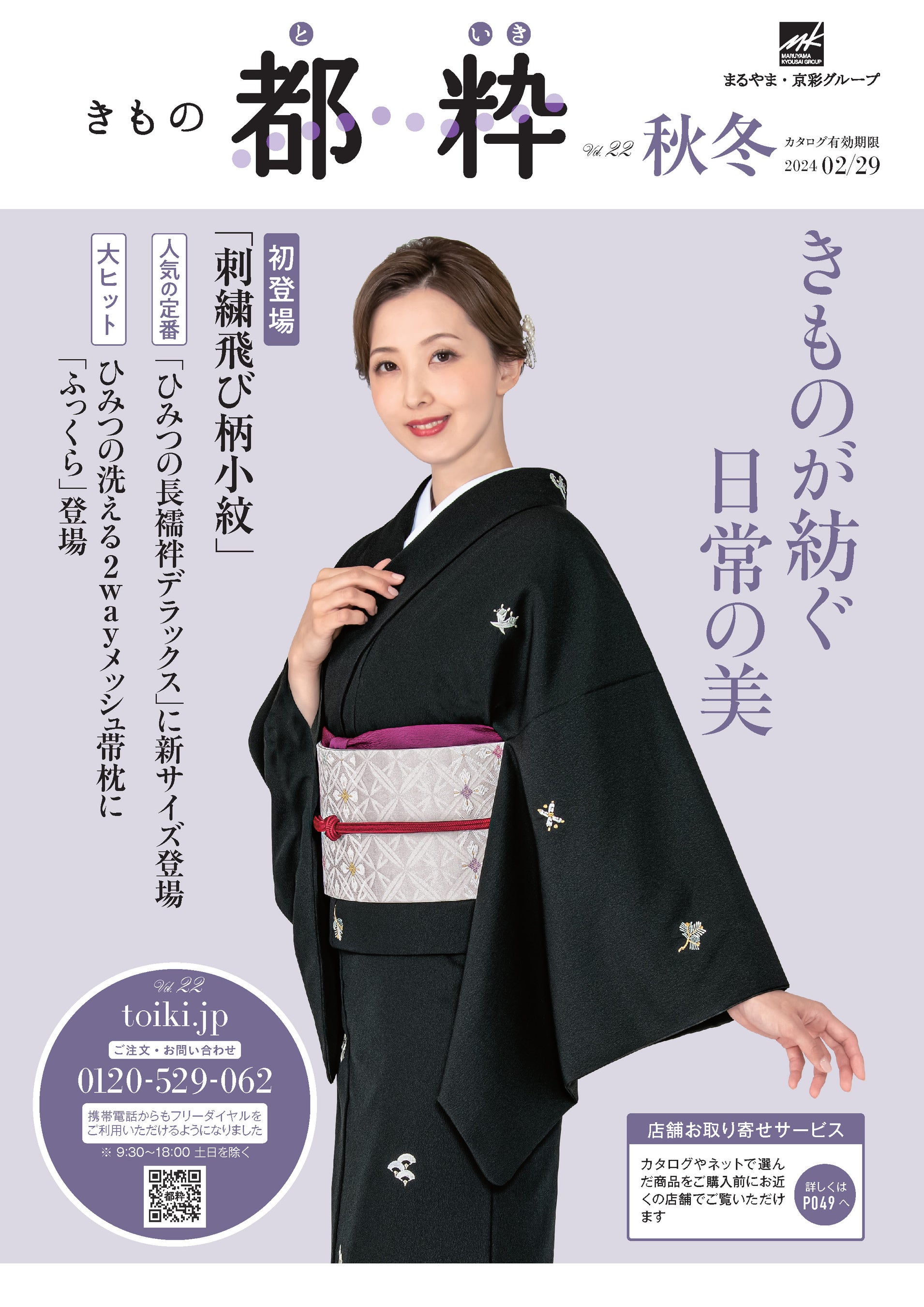 「きもの都粋」の通販カタログの最新号「2023秋冬 Vol.22」が2023年9月1日に発行いたします。また、同日「都粋」公式サイトにてカタログ請求(無料)がスタート。アンテナショップでの頒布も開始となりますので、ご覧になりたい方はご用命ください。