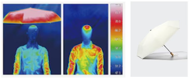 ※日射1時間照射後のマネキンサーモグラフィ画像(遮熱傘はNATURALを使用)