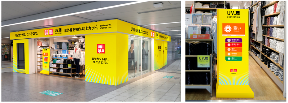 UVカットは、ユニクロで。ユニクロの駅ナカ店舗が今年も黄色に変身!店舗内にUV指数計を設置新商品やアップデートした商品が続々登場します