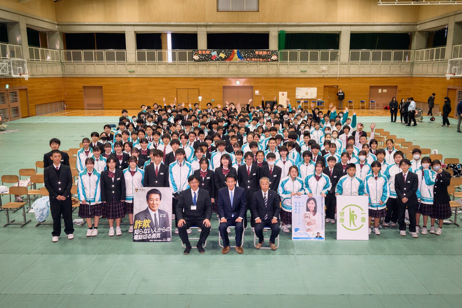 2024年12月19日(木)茨城県の茨城町立青葉中学校にて、厚生労働省特別健康対策監の杉良太郎氏による全校生徒248名と地域
