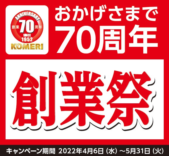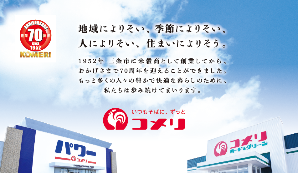 ホームセンターの「コメリパワー」や「コメリハード&グリーン」を通し地域のライフラインとして、地元のプロを応援する株式会社コメリ(所在地:新潟県 新潟市、代表取締役社長:捧 雄一郎)は、1952年4月に創業以来、70周年を迎えることができました。